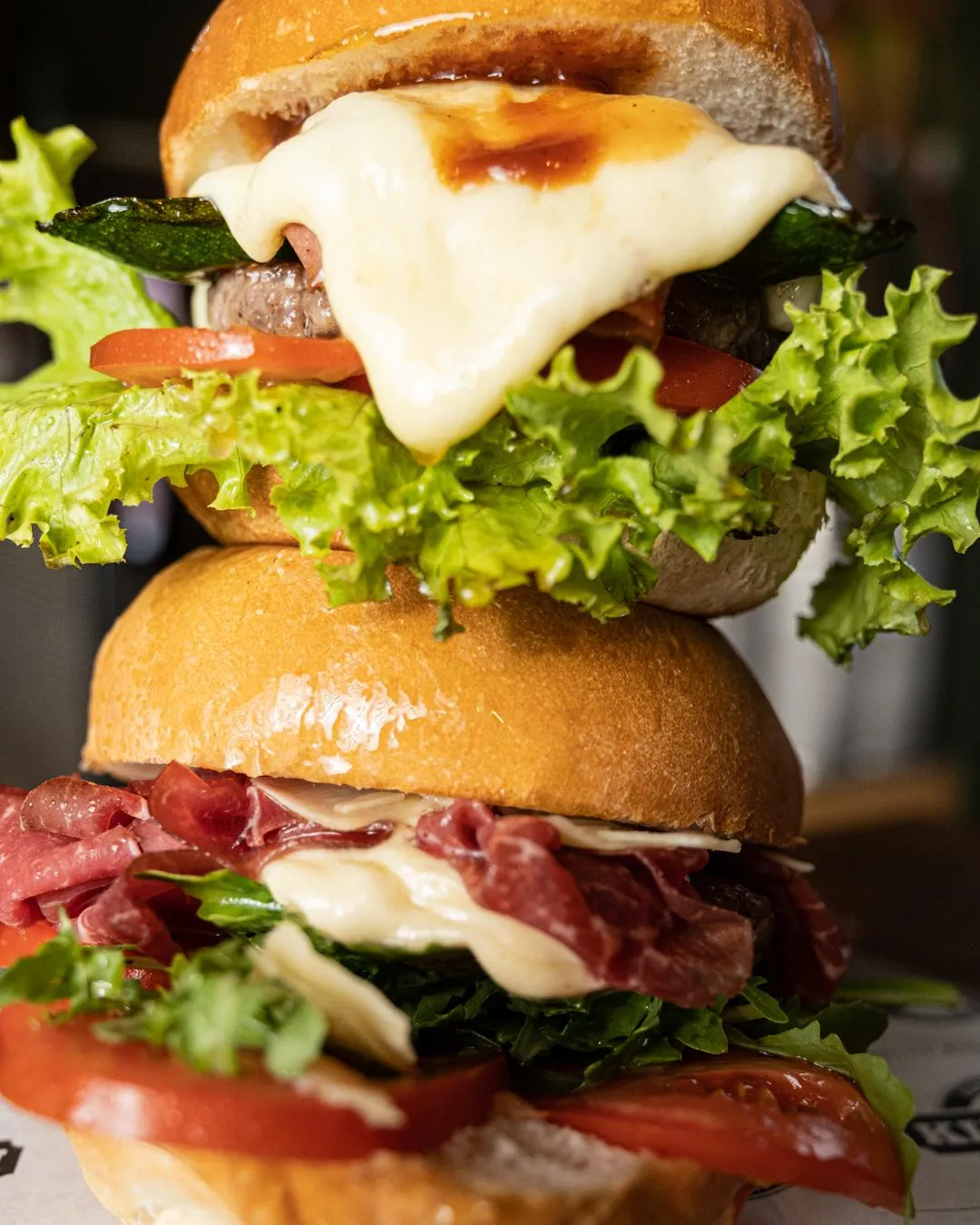MELISSA (Hamburger di manzo friulano, bresaola della Valtellina, rucola, formaggio grana, pomodoro ramato, formaggio edamer fuso, salsa rosa della casa, pane al latte artigianale)
